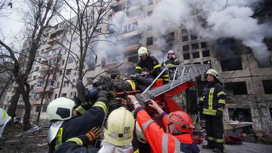 En Sviatoshyn, en el oeste de Kiev, un bombardeo golpeó un edificio de 16 plantas donde “los cuerpos de dos personas fueron recuperados y 27 personas fueron rescatadas”, indicaron las autoridades en un comunicado en Facebook.