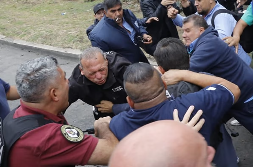 El ministro fue retirado del lugar tras permanecer varios minutos rodeado por una multitud.“Tranquilos, muchachos”, intentó calmar en vano a los manifestantes mientras recibía agresiones de todo tipo. En el medio del tumulto, perdió incluso el calzado.