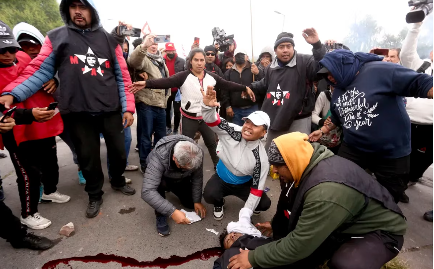 Las imágenes de TV mostraron a un manifestante tirado en el asfalto, boca arriba, con una lesión en la cabeza que sangraba. Se trataría de la persona que está delicada y que habría recibido el impacto de una cápsula de gas lacrimógeno. Más tarde se informó que se trata de Nelson Mamani, un integrante del Movimiento Argentina Rebelde (MAR), relacionado con la CTA. El MAR está activo en las marchas piqueteras con su bandera, que lleva las imágenes de San Martín, el Che Guevara y de Monika Ertl, una guerrillera de origen alemán que mató al coronel Roberto Quintanilla, quien participó en la muerte del Che Guevara.