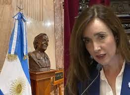 – Villarruel: Está en el archivo el busto, les avisamos precedentemente que se lo iba a sacar. Lo sacamos porque no fue senador, no fue vicepresidente, no soy su viuda y aquí tiene que haber igualdad de todos los espacios. Simplemente por esa razón.