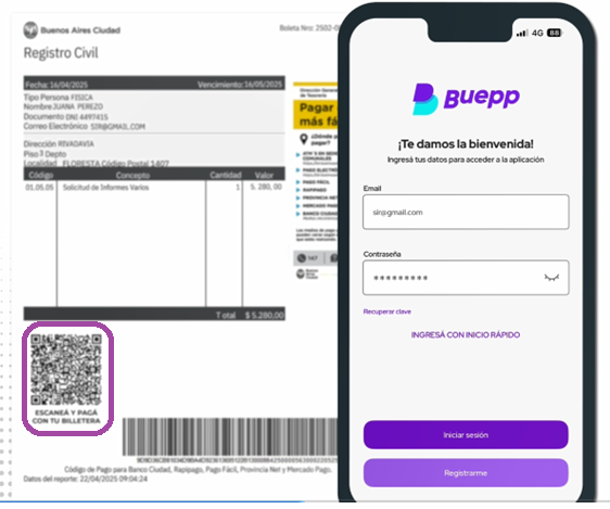 A partir de la nueva modalidad de pago con QR disponible para los trámites no tributarios de la Ciudad de Buenos Aires, la billetera digital BUEPP incorpora un original beneficio que brinda un descuento al pagar diversas gestiones en la Ciudad, tales como licencias de conducir, infracciones de tránsito, así como los trámites de Habilitaciones y del Registro Civil, entre otros. Ahora, pagando a través de Buepp, escaneando el QR del trámite seleccionado, se obtiene un descuento del 20%, con un tope de reintegro de $10.000 (por única vez, por cliente, vigente hasta el 31/12/2025).
