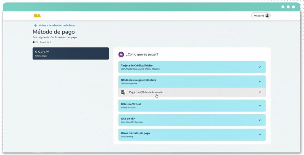 El pago debe realizarse exclusivamente con dinero en cuenta de la caja de ahorros de la billetera escaneando con Buepp los QR emitidos por el Gobierno de la Ciudad de Buenos Aires para el pago de las BUI (Boleta Única Inteligente).